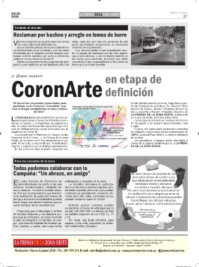 del Arte”. LA PRENSA DE LA ZONA OESTE, deliberarán