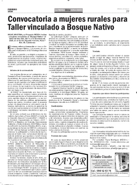 las mujeres en el medio rural. El cupo de participantes será de 30 personas. 686 – Correo electrónico: pflorit@mgap.gub.uy