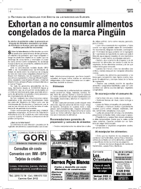 Se trata de productos procedentes de Eu- Síntomas alimentos congelados habilitados para ser con-