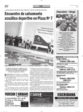 stá previsto que participen 100 adolescen- pruebas y disciplinas para el salvamento acuático.